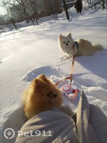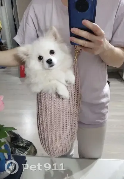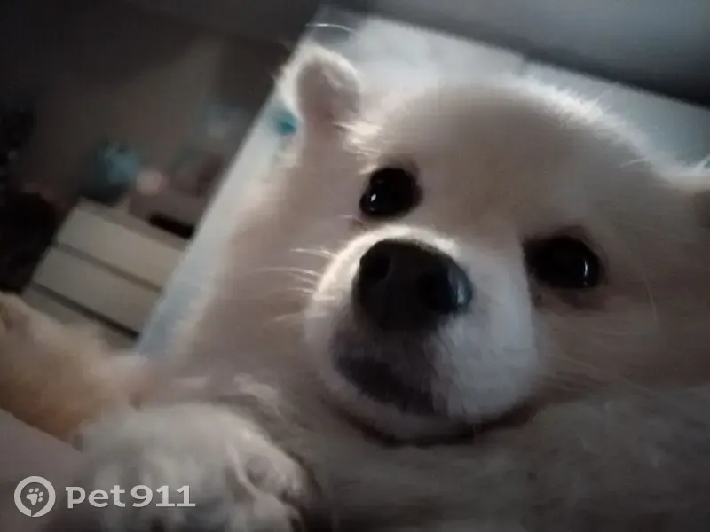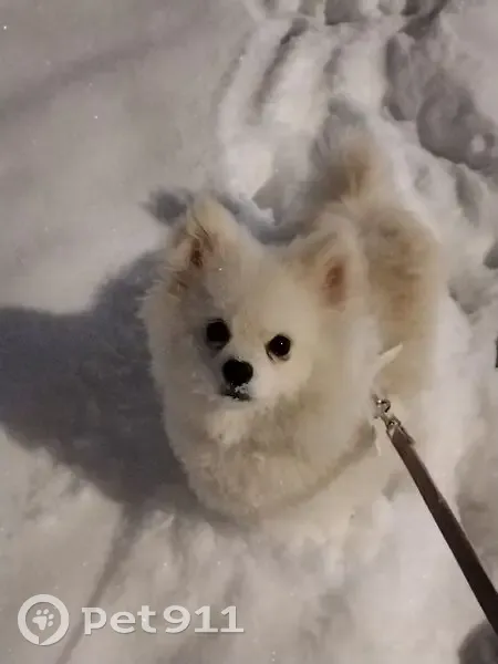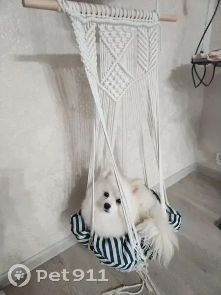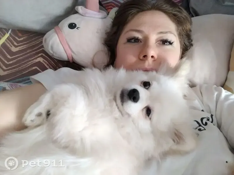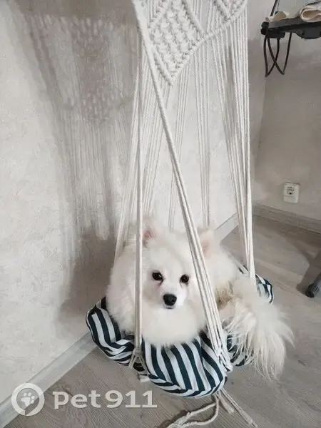 Пушистая, беленькая, на спине шерсть бежевая, на верхней челюсти нет нескольких зубчиков и ещё 2 больных, желтоватых. В зелёной шлейке. Милка немного побаивается крупных собак, но людей не боится, может подойти, чтоб ее погладили, приветливая. Потерялась вечером, около 22 вечера в сквере Судакова.