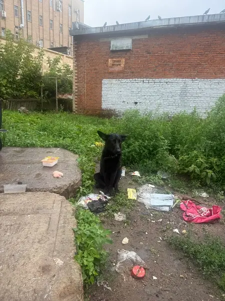 Немецкая овчарка,короткошерстная, сука. Окрас черный без отметин. Ошейника нет. Есть клеймо в ухе. Возможно травмирована. Видели бегущей по проектируемому проезду в сторону хлебозавода.