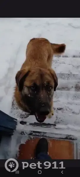 Рыже-подпалый, мордочка с черными пятнами, ошейник чёрный с кольцом, стерилизована. Очень доверчивая, идет на контакт с людьми.Потерялась в районе Моссельмаш.