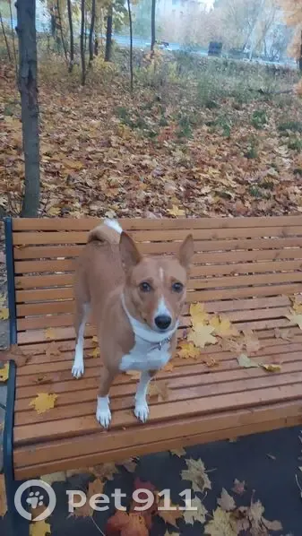 Порода Басенджи.Рыжая с белым воротником,в ошейнике.
