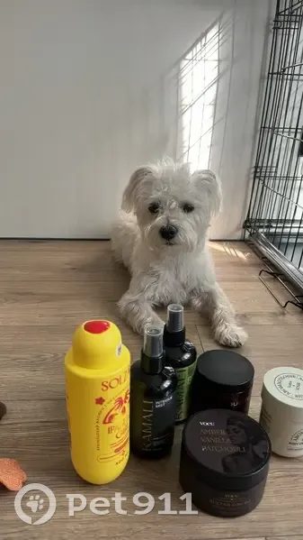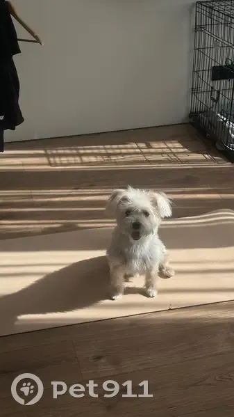 Мальтипу кобель кремового окраса Был в коричневой шлейке Пугливый В 17:40 по камерам был замечен на поморской лице побежал в сторону станции Дегунино Перебежал пути на другую сторону В 18:30 был замечен по камерам с людьми на противоположной стороне