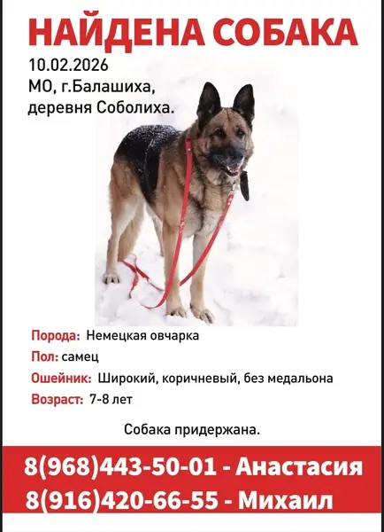 Пропала собака Немецкая овчарка кличка Соня в Одинцовском районе