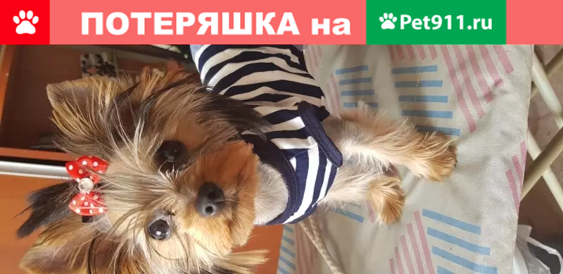 Йокширский терьер, была одета с полосатое платице ( как на фото) на голове хвостик ( между ушек) и сзади два хвостика, потерялась в районе царицынских прудов. Помогите найти мою девочку(((((