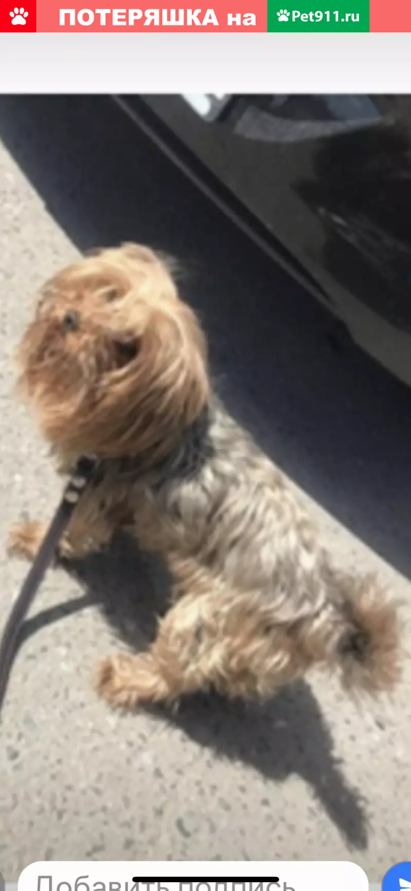 Пропала девочка Йоркширский терьер йорк 10 лет, есть клеймо, спина подстрижена, хвост на голове растрепался, без резинка.пропала в районе метро Домодедовская, могла убежать далеко .