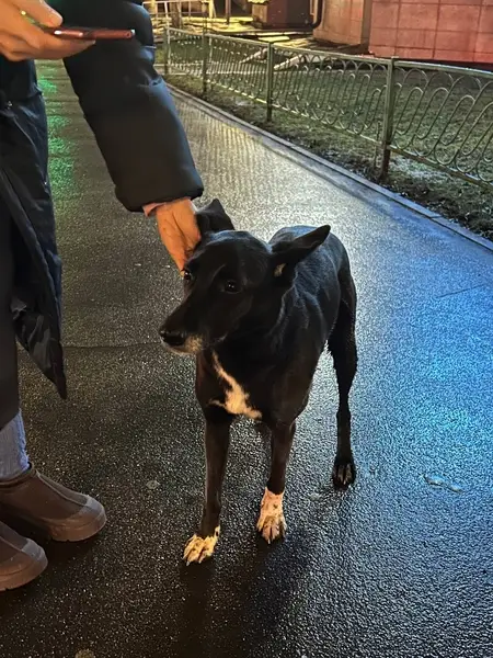 Пропал щенок Около дома 12к3 по бакинских комиссаров Черный, длинноногий, с коричневым пятнышком на шее, полувисячие уши Примерно 3мес Вознаграждение!
