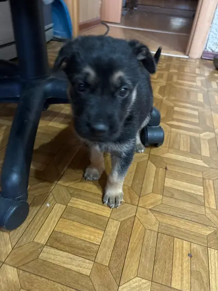 Порода "московский дракон", чёрный с рыжими подпалинами,вес около 4кг