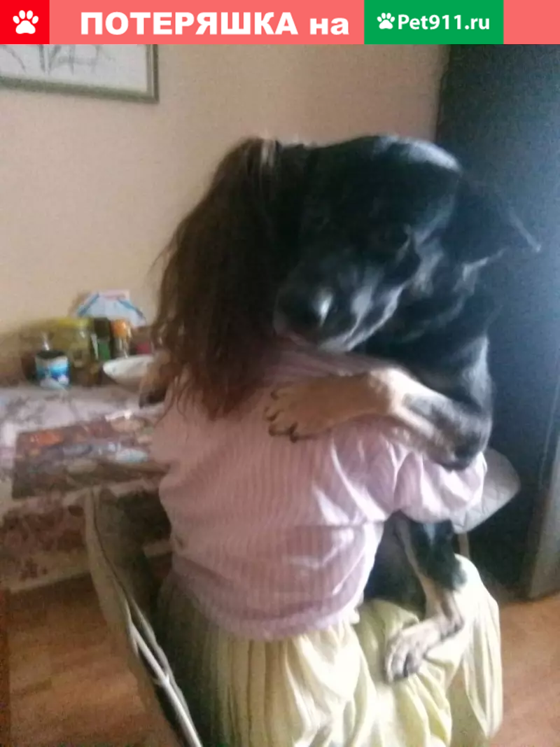 Боско. Метис немецкой овчарки, чёрного цвета. Некрупный, немного выше колена, добрый, боязливый. Недавно перенёс операцию на брюшной полости, живот выбрит, швы ещё до конца не за жили. Был одет в синюю операционную попону. Выбрит живот, был одет с синюю операционную попону