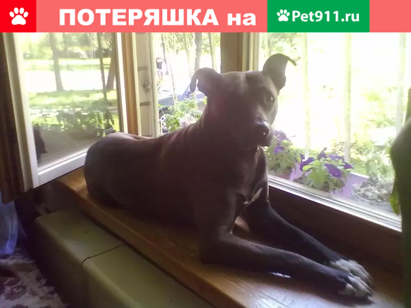 18/07/2019 г. сорвался с ошейника и убежал метис питбуля, мальчик кастрирован, шоколадный окрас, белое пятно на груди и белые носочки, абсолютно не агрессивный, пугливый, к чужим людям не подходит, только к собачкам знакомиться. Был оставлен на передержку на неделю в приют "Шереметьево", т.к. был взят оттуда 7 лет назад. 2 дня его видели в Новоподрезково и вдоль трассы Ленинградского шоссе. Объявления расклеены, ходим, ищем, последние 3 дня звонков нет. Люди, милые, умоляю, если кто-то видел, любая информация, нашедшему вознадгаждение гарантирую.!!!!