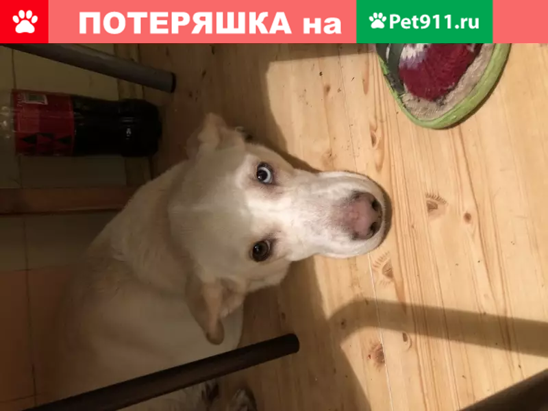 Помесь лабрадора и хаски, 3 года, сука, один глаз карий, другой голубой, окрас в основном белый, спинка рыжеватая, ошейника нет, но на его месте окрашена шерсть в рыжий цвет ( от ошейника) утеряна в районе Силикатная, г Подольск, может так же находится в городе щербинка. Пропала 3 июля. Откликается на кличку Хана