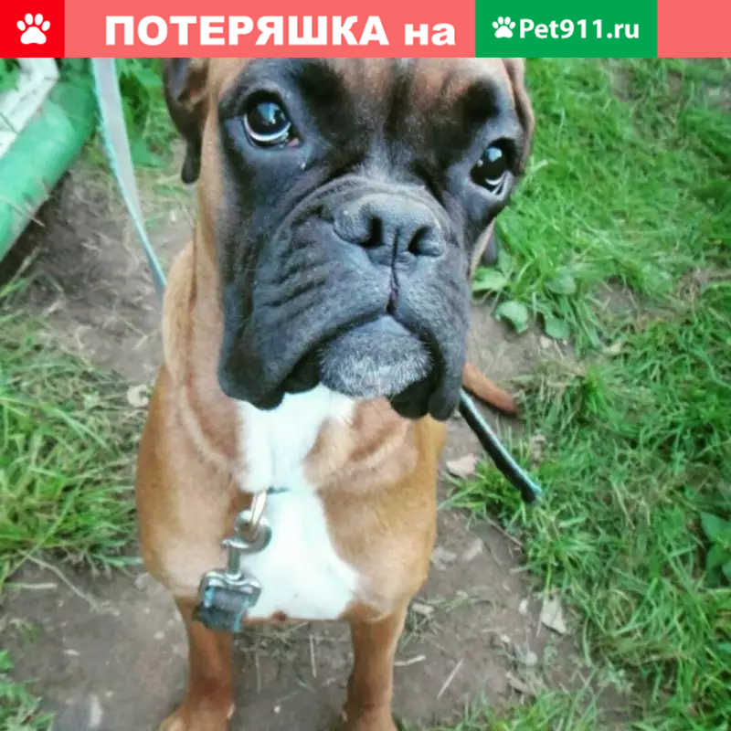 Немецкий боксёр, девочка трёх лет, окрас рыжий с белой грудкой и чёрной мордой, хвост и уши не купированы, на животе клеймо upz 36 (цифру могу перепутать). Убежала во время вечерней прогулки 22 августа 2019. На тот момент была без ошейника.