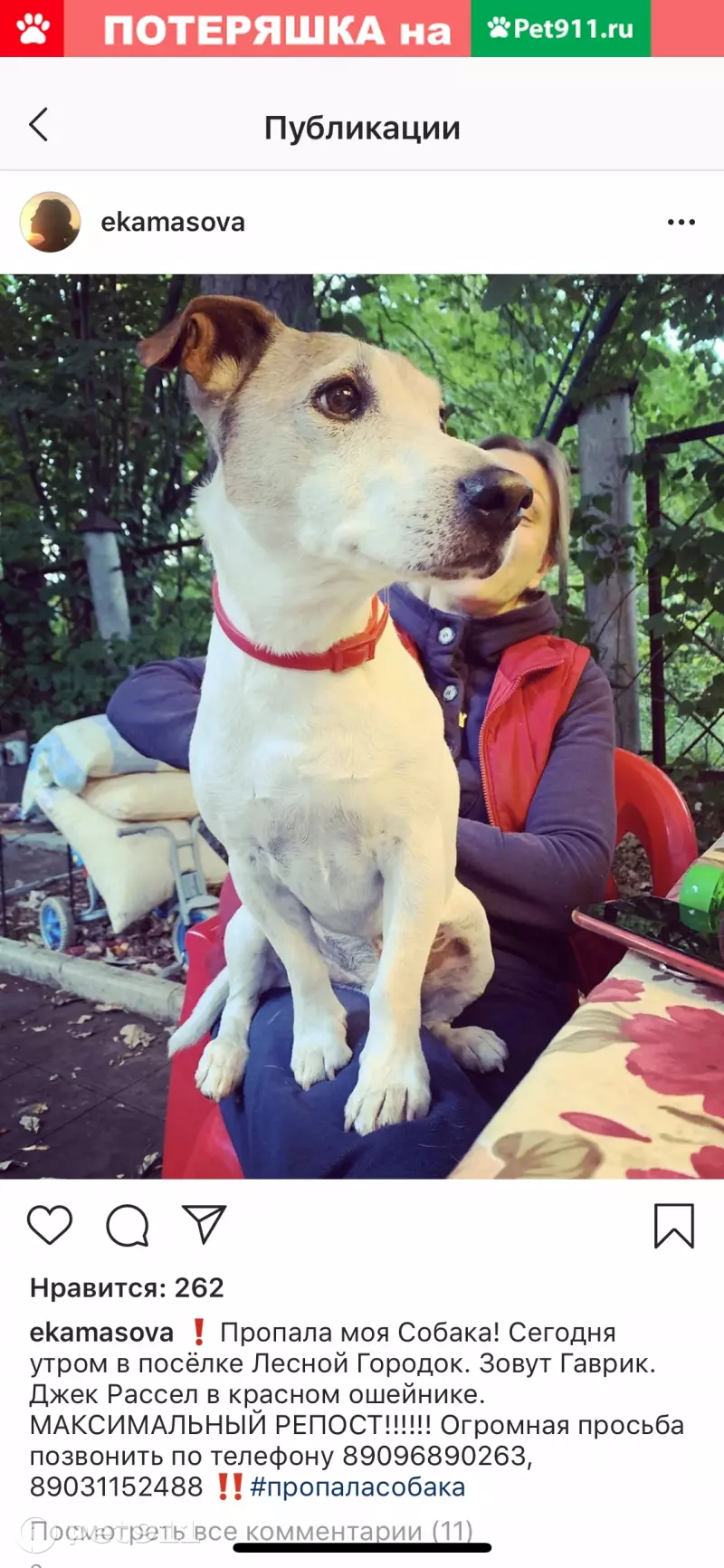 Объявление rl383819 размещено в группе ВКонтакте Москва | Pet911.ru пропала найдена собака кошка