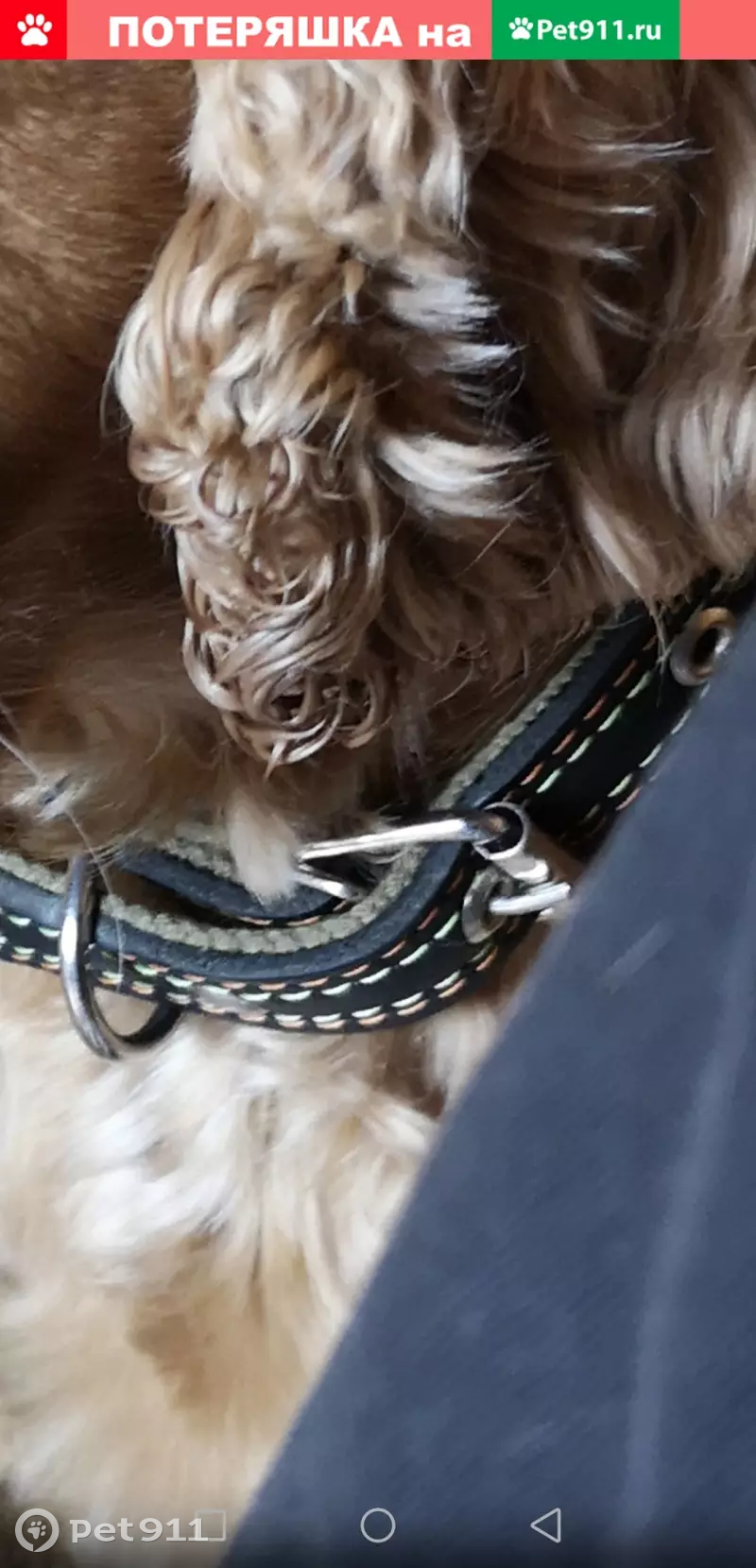 Барри. Английский кокер спаниель, кобель, 3 года, полностью рыжий, хвост купирован, в тёмном кожаном ошейнике с двойной строчкой, без адресника.