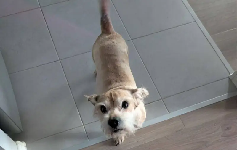 Рыжий, взрослый пес Брюс, шерсть в разные стороны, особенно на хребте, среднего размера, зубы кривые, уши стоят, глаза косят, может лаять, плохо вдет и слышит из-за возраста