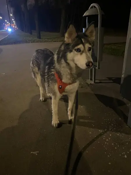 Собака породы хаски . Девочка . 9 месяцев , но выглядит постарше . Сорвалась с поводка . Может быть без ошейника . Зовут ника . Место пропажи Марфино. Г. Москва . Московская область . Может быть где угодно .