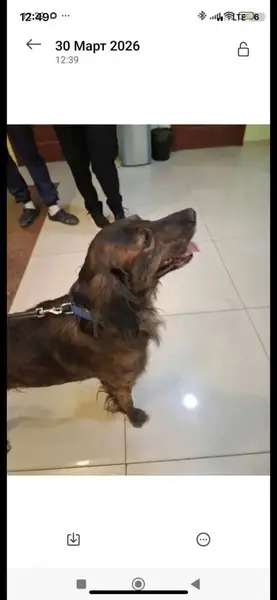 Пропала собака мини такса длинношерстный, окрас рыжий, на ухе клеймо.