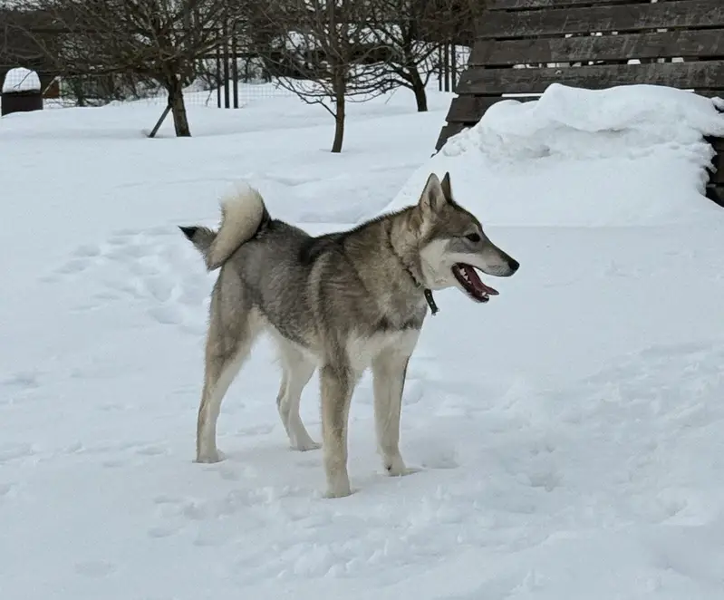 Лайка, 6 месяцев, окрас серо-коричневый. Кличка - Багира. Адрес потери - Ясный проезд 16. Остановилась машина (белые жигули), собаку подозвали и увезли.