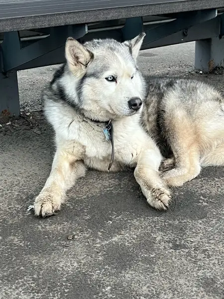 Придержите его, пожалуйста!!! Наш неуловимый хаски был замечен вчера в районе 21-00 бегущим на съезде с МКАД ЮГ в сторону поселка Развилка (сьезд на Каширку), возможно он позже замечен в бегущим по внешней стороне МКАД в сторону села Беседы. Без ошейника, совершенно ручной, отзывается на Хасик. Вознаграждение!!! 89999896295
