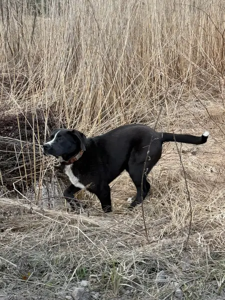 Питбуль,девочка,черного цвета,белая грудь и кончики лап,уши не обрезаны.