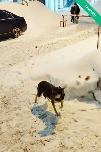 Метис, окрас черный с коричневым, 1 год, в холке 45 см, в ошейнике с поводком 5м, дружелюбен. Боится салютов, петард, может быть напуган