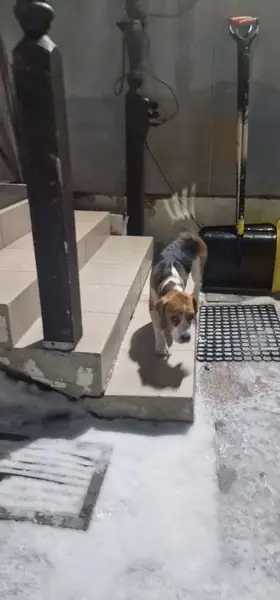 Бигль, окрас на фото, слепой, в зелёном ошейнике, на данный момент хромой, ему наехала машина на лапу(сообщил один человек), особо в руки не лезет, поэтом лучше иметь любую вкусняшку и ошейник, зовут лаки(лакусик лака). Очень хотим найти, 2 собака нервничает.