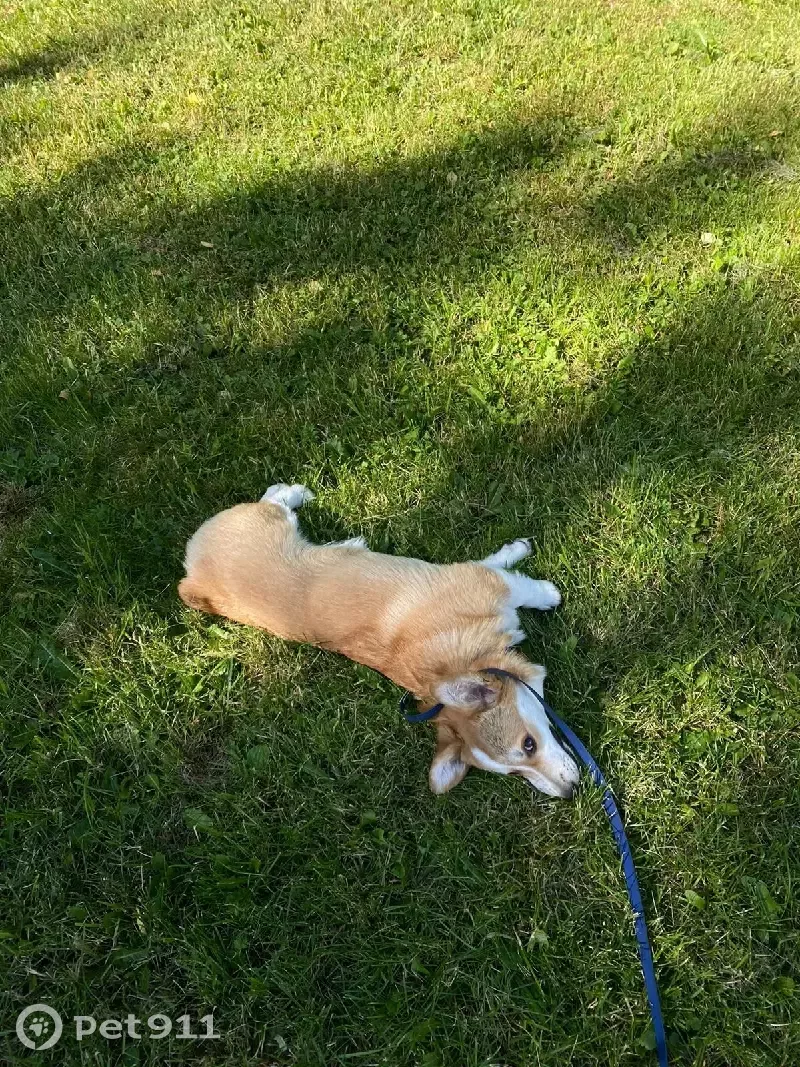 Синий ошейник, Корги 7 месяцев, кличка Ириска. Побежала за двумя бездомными овчарками, не реагируя на зов. Со слов охранника, с территории выбежали две собаки без Корги. На территории комплекса не нашли