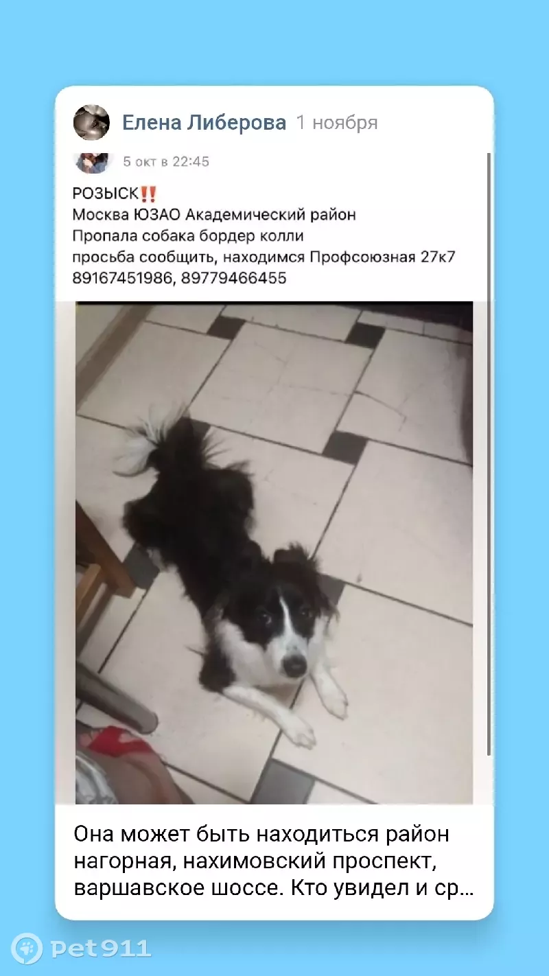 Pet911.ruМоскваПропавшиеСобакиПропала пугливая собака в районе Черемушки, видели возле метро Нахимовский проспект. Помогите!