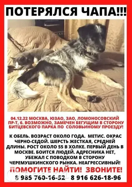 Кобель, 1 год, метис дратхаара, черно-серый с проседью, лапы коричневые, уши висячие, глаза светло-карине, не агрессивен, голоден, последний раз замечен в парке Коломенское 16.12.2022