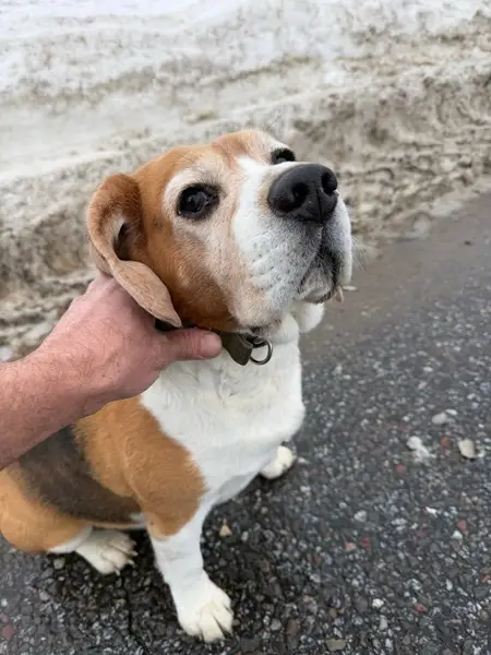Бигль сучка 3,5 года, плотная около 18 кг, в красной шлейке без адресника и клейма. Может быть с ранами в области холки