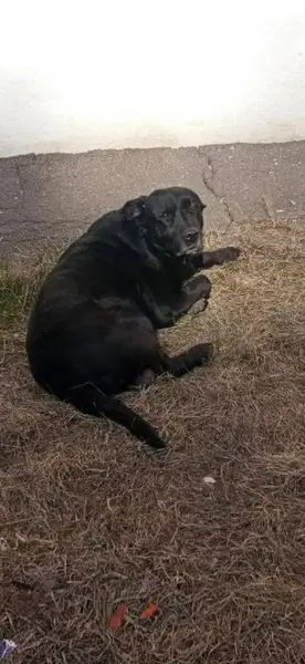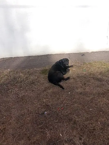 Щенок по имени Барсик .Очень добрый,всех любит .Чёрный с белой шейкой .Смесь шарпай с питбулем
