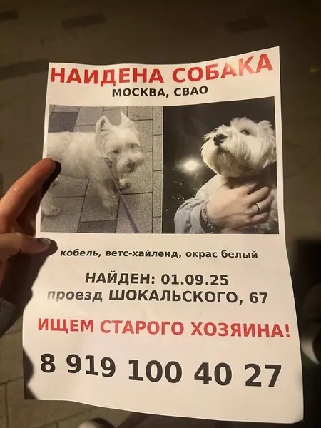 Если вы заметите собаку, пожалуйста, сообщите по номерам, указанным ниже