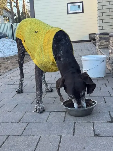 Девочка, метис курцхаара, черная , грудь и передние лапы пятнисто-серые. Убежала в испуге от пьяного человека. Молодая около 1,5 лет. Очень пугливая, р-н не знает. Есть адресник Около 9 утра 19 мая ее видели бегущей по разделительной полосе по отбойнику, между Рябиновой улицей и Рублевским шоссе. Двигалась в сторону Можайского шоссе.