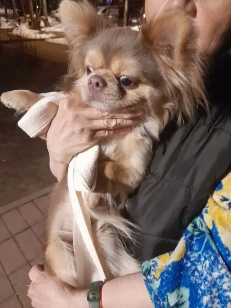 Порода: Чихуахуа длинношерстный. Окрас лиловый дымчатый. Кобель. Обстоятельства потери. Вывернулся из ошейника на прогулке. Около 10 утра.