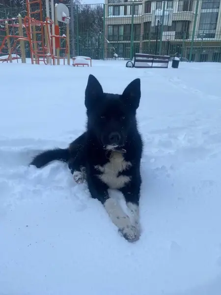 Чёрный с белым подшерстком. Метис, бордовый ошейник, не агрессивный, пугливый, на ласку выйдет. Женщин не боится. Убежал в нг ночь от салюта. Морда седая, пёс пожилой, 11 лет.