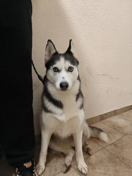 Кобель хаски, 2 года. Окрас черно-белый,глаза карие(оба)Был в синей шлейке, наверное сняли... Был украден мужчиной с бородой, смотрели по камерам. Пес добродушный, поэтому тот отвязал и увел.
