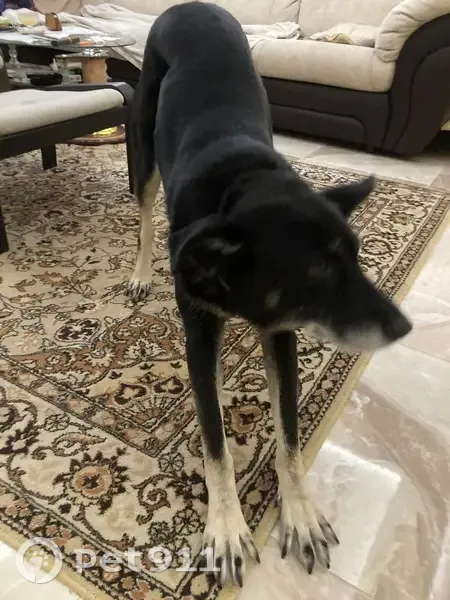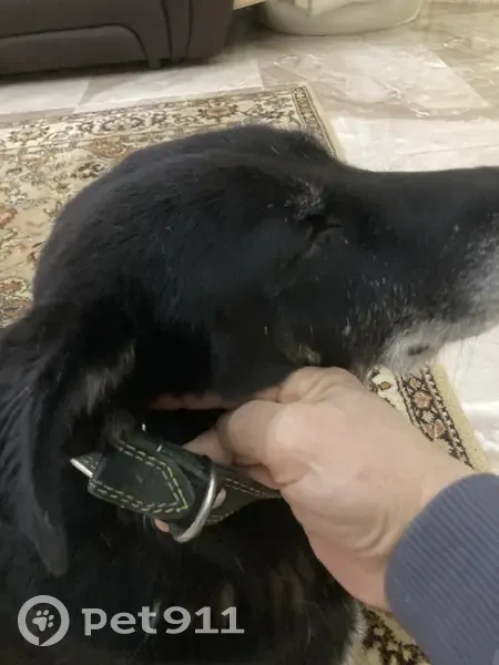 Чёрный, добрая , слушается , ошейник чёрный кожаный, взрослая , не больная , не истощена.
