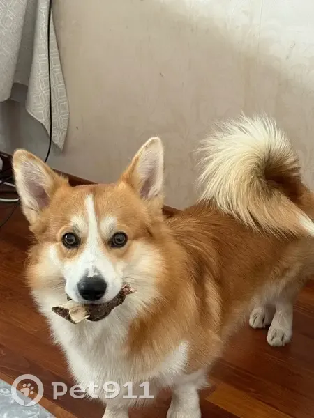 Отзывается на чоппер, белое пятно на шеи. Дедушка оставил калитку на даче открытой и он сбежал. На нем ошейник с номером для звонка. Также он чипирован