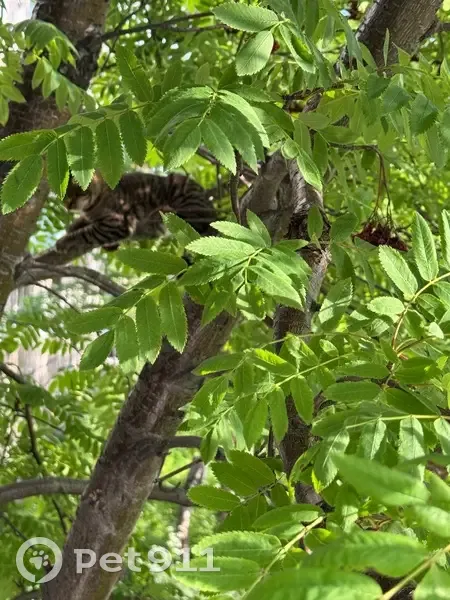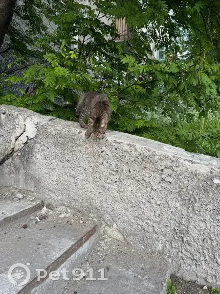 Серая кошка. Возраст ориентировочно 6-8 мес. Очень ласковая. Ухоженная. Загнали дворовые коты на дерево, где она провела двое суток. Сейчас в безопасности.