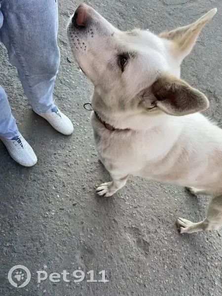 Сегодня утром в районе ул.Морской найдена собака, белая шерсть, нет части Зубов, то есть собака не молодая. Пыталась 4 раза выйти на дорогу во время движения машин, от чего я её остановила. У собаки есть оранжевый ошейник, но не было поводка. По имеющейся информации гуляет там более 2 недель. Достаточно спокойная, но при этом игривая, идёт на контакт, не агрессивная, на других собак не лает вообще, не огрызается, но при этом и не убегает. Характер прекрасный, понимает, что ей говоришь.