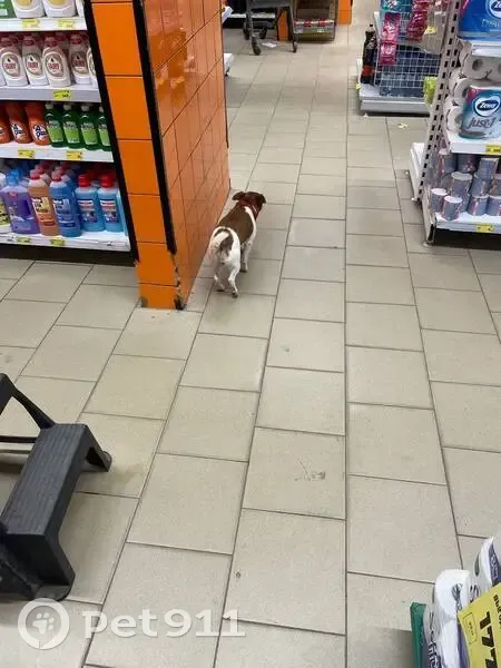Бегал по улице, потом забежал в Магнит. Бегает ищет хозяина.