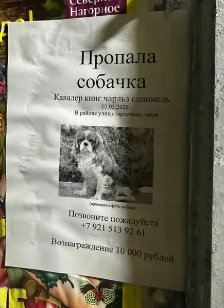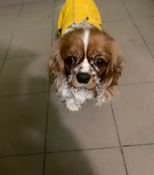 Найдена собака породы кавалер кинг чарльз спаниель, без ошейника, кабель. Собака находится в стрессовом состоянии. Сидел на 1 этаже, не агрессивный , к людям тянулся.