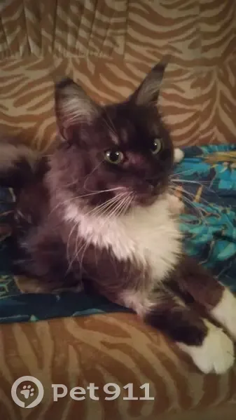 Найдена кошка!Порода мейн-кун.Серо-черная с б...