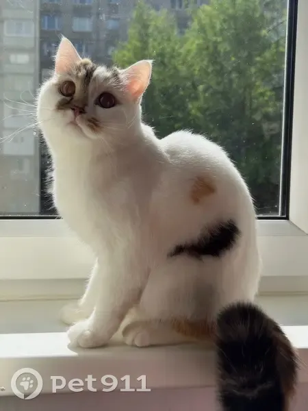 Белая кошечка, с разноцветными пятнами и темным хвостиком, не крупная. Очень шугливая. 22 июля не понятным образом выпала из окна и от страха убежала. Обыскали весь район, несколько подвалов, пару раз видели прохожие, но информация не точная. Кошечка очень важна для семьи