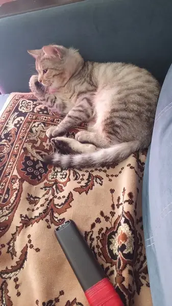 Найден кот! В районе 1 школы . Окрас серый , похож на британца.