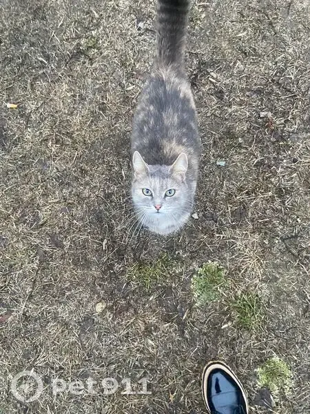 Найдена кошка, пол женский, окрас серый с рыжими пятнами, бегала во дворе дома не один день за всеми людьми и мяукала, просила помощи, видно, что домашняя и чистая.