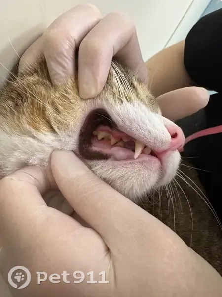 сорвался со шлейки 15.07 , справа черная десна сверху и снизу , слева сломан ус вблизи хорошо видно . Возможно боится людей