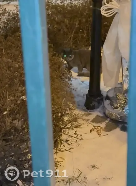 Кот/кошка, окрасом похож на британскую или русскую голубую, на шее ошейник, сначала пошел/пошла на контакт, но сбежала очень быстро, видела около театра Огниво, Мытищи. Запомнила ошейник с красными или бордовыми пятнами. Выглядит здоровым