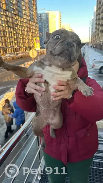 Девочка, французский бульдог найдена, без поводка и без шлейки, металась у магазина Лента