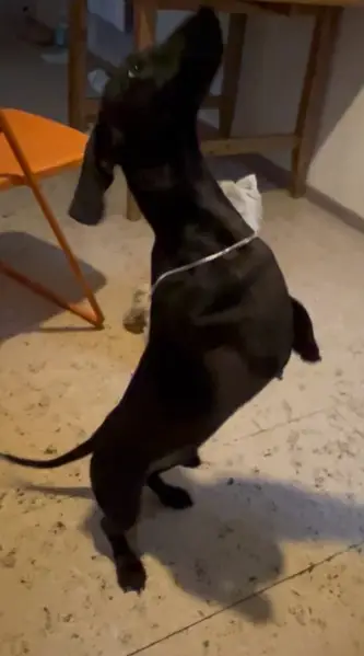 Чёрный взрослый доверчивый пёс. Скулит и просится в соседнюю квартиру. В подъезде никто о нем ничего не знает. Адрес: Новомытищинский проспект 80, корпус 7