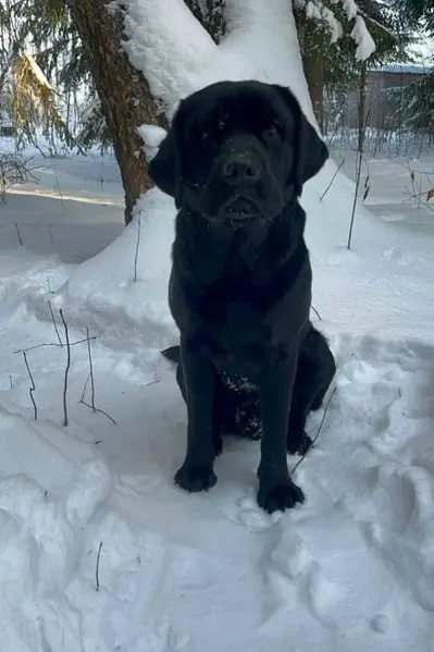 Бегает в лесу, без ошейника. Мальчик, дружелюбный. Похож на метиса лабрадора ЖК Императорские Мытищи