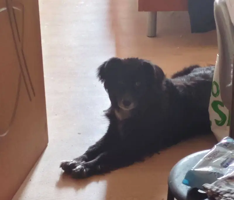 Окрас черный,глаза карие, добрый, пугливый, чуть что сразу хочет залезть на ручки) очень боится машин и сигналов,громких звуков.Знает команды дай лапу, сидеть. Рост выше колена, по возрасту врач сказал около 8 месяцев. Дочка привела это чудо вчера 25.04. 2025 г. Домой, забрав у каких-то людей в Мытищах ( к которым он пришел и жил около недели) они оставить не смогли, сейчас находится у нас.